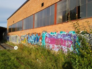 Efter att ha hittat lite burkar fortsatte vi in mot Örebro där ett av målen för dagen var en cache som heter ”Balkan” som ligger vid en gammal industribyggnad och en lastningsplats för tåg.