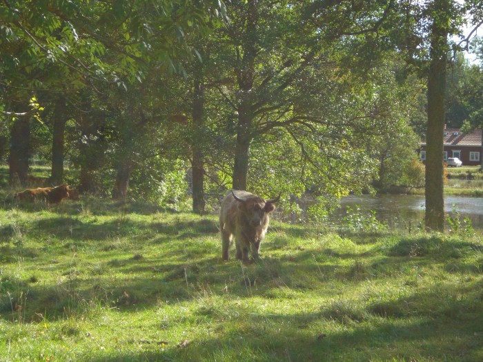 Det fanns kor med häftiga horn och roliga frisyrer i hagarna i närheten av huset.