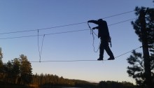 Uppe på billingen fanns det någon slags ”team-building-bana” som kanske skulle vara ett perfekt träningsställe för geocachare. Tyvärr var den inhägnad och inte öppen, men det skulle vara kul att prova nån gång – med säkring förstås! 🙂 På onsdagen hann vi med delar av en rolig trail som kallas KM-serien och ligger mellan Skövde…
