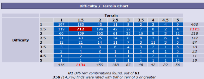 Lördagens planerade tur till Karlstad blev riktigt givande. Vi hittade den sista cachen för att vår Difficulty-/Terrain-karta skulle bli fullständig, ett mål som vi haft ett tag. För er kära mugglare som läser det här så har geocacher olika svårighets- och terrängfaktor och det finns 81 olika kombinationer.