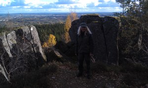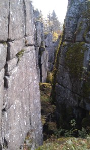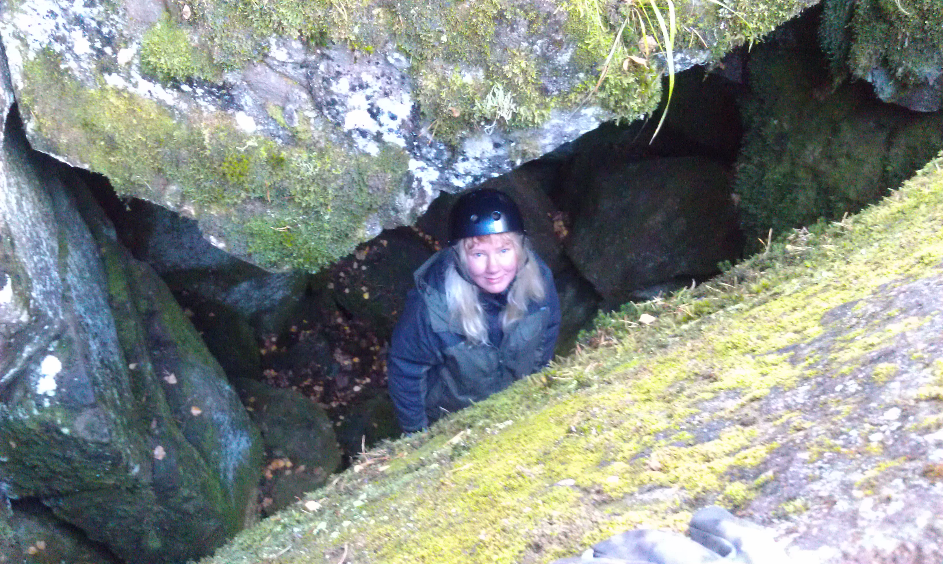 Här försökte vi hitta burken ”Killing the Myth”  nere i grottorna som bildats av stenblocken, men  vi lyckades tyvärr inte hitta den, trots två timmars bökande och kravlande i de trånga utrymmena. Det var väl inte de bästa förutsättningarna för det var ganska blött och halt på klipporna och längst ner var det 30 cm vatten, men det var ett roligt äventyr och hit kommer vi tillbaka för att söka där vi inte kom åt denna gång! 🙂