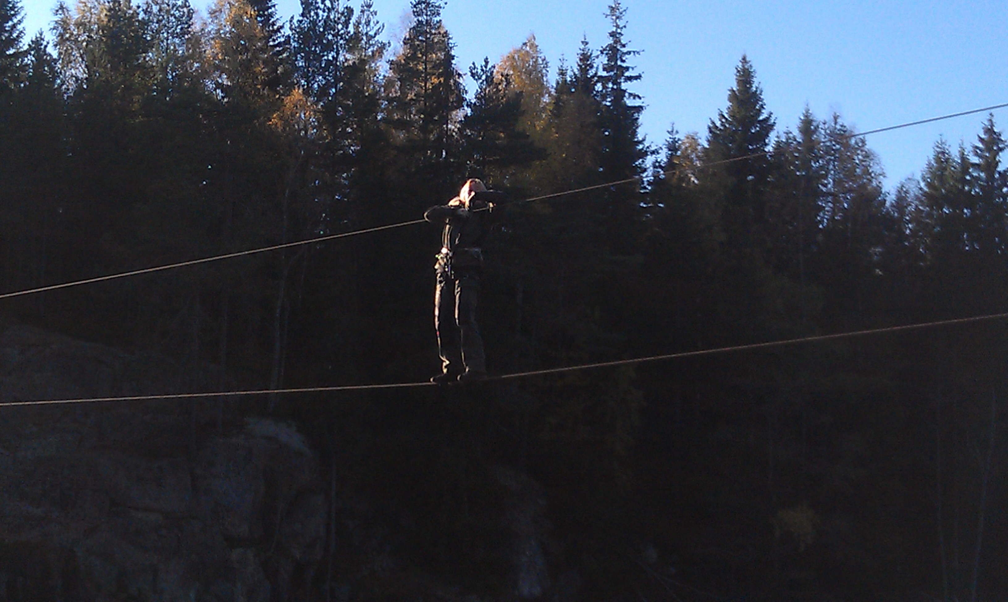 Uppe på billingen fanns det någon slags ”team-building-bana” som kanske skulle vara ett perfekt träningsställe för geocachare. Tyvärr var den inhägnad och inte öppen, men det skulle vara kul att prova nån gång – med säkring förstås! 🙂