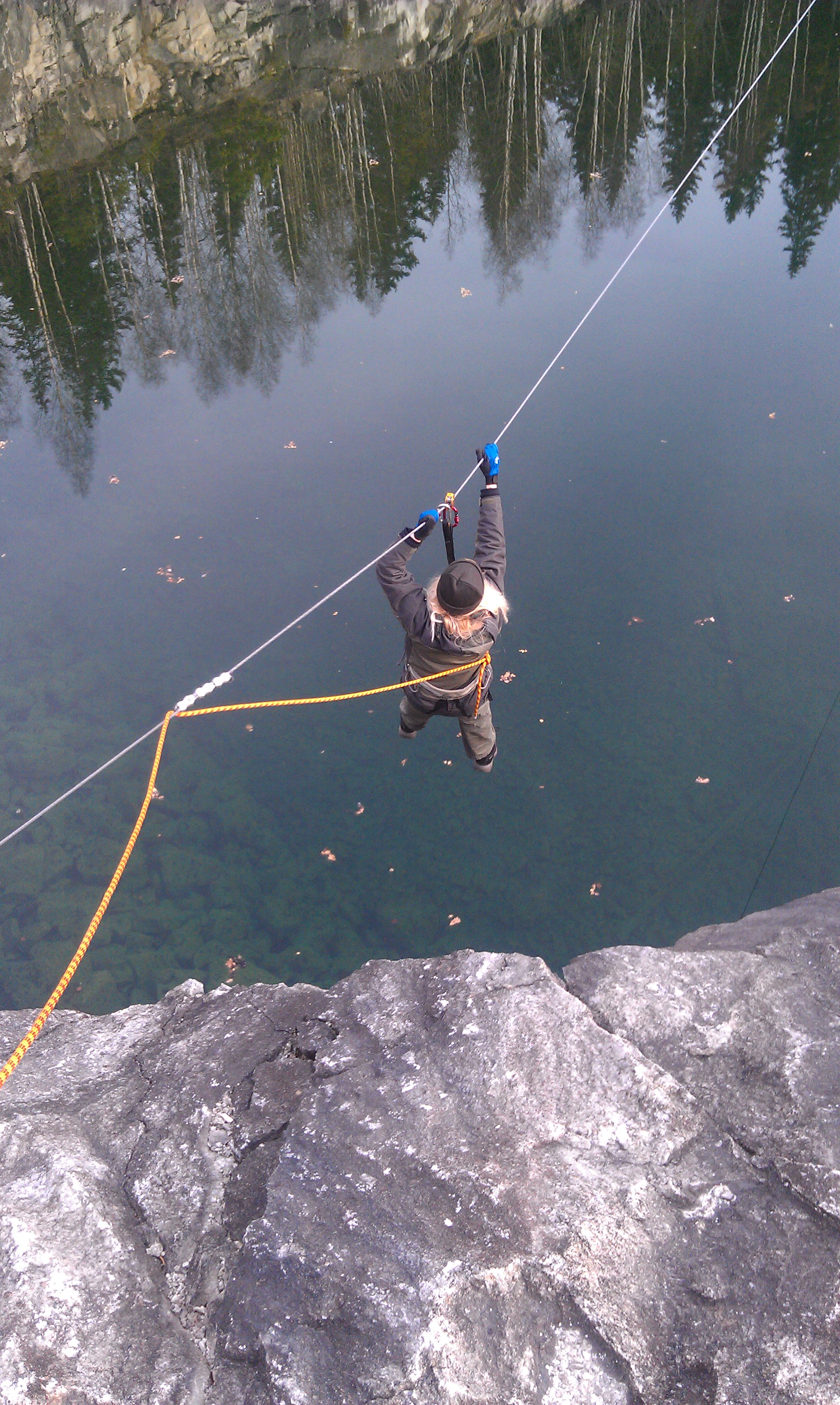 Orebro:Ohhh my good! heter den utmaningen och det var väl ungefär så man kände när man kom fram till platsen och skulle ta sig ut på en vajer. Annika fick äran att ta sig an uppdraget och det var riktigt,riktigt roligt men också väldigt fysiskt ansträngande att dra sig ut till ledtråden som satt en bit ut på vajern.
