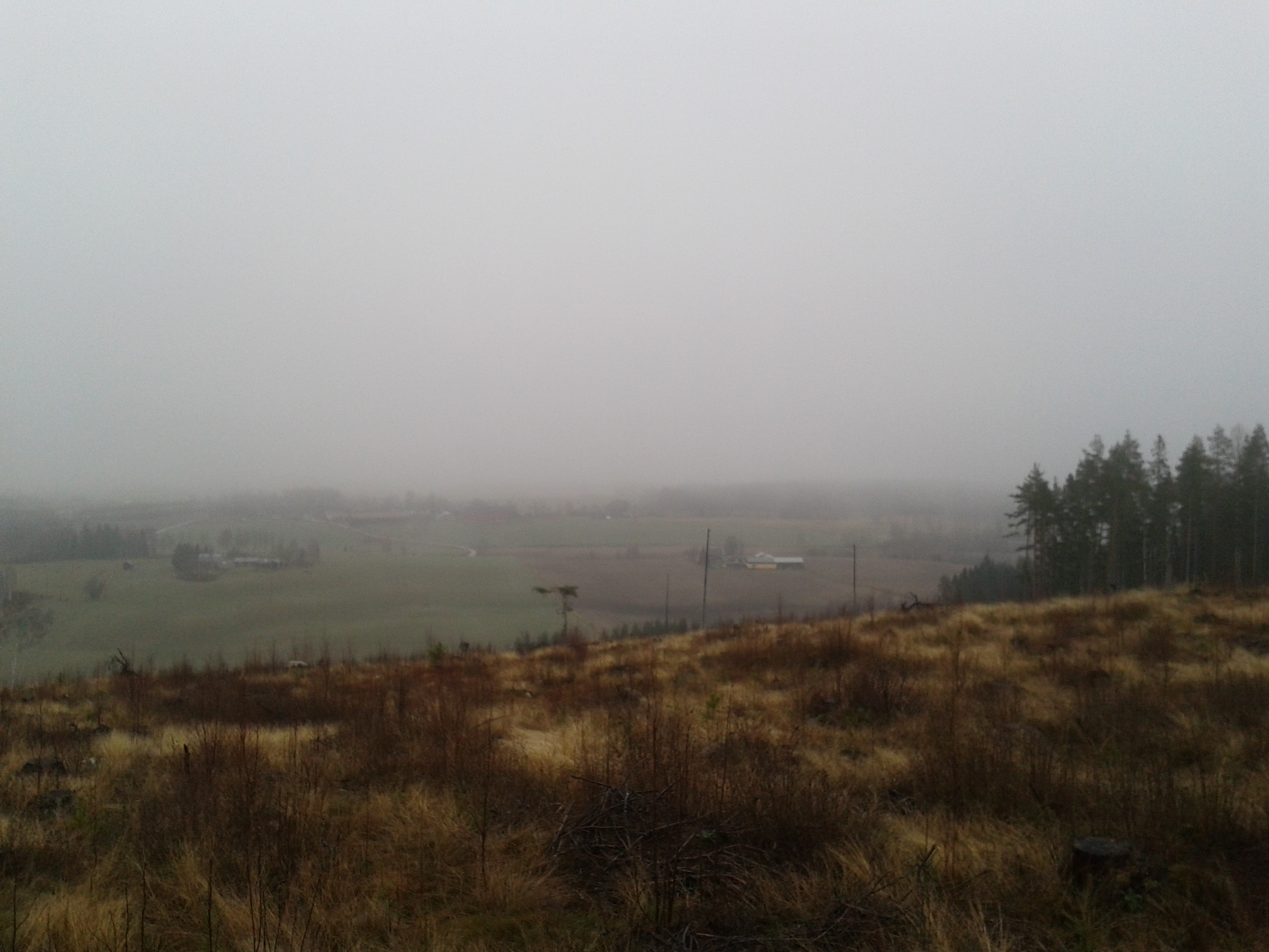 Vi gick upp på ett berg som heter Knåsberget. Trots gråvädret var utsikten över gårdarna och landskapet magnifik. Det kom ett tåg när vi stod däruppe och beundrade landskapet och det både lät och såg häftigt ut när det åkte därnere i dalen.