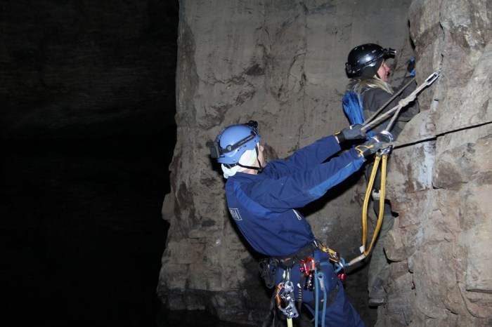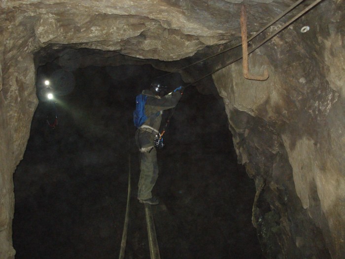 På en del ställen fick vi säkra oss när vi skulle över gruvhål och raviner eller när vi skulle klättra på olika ställen.