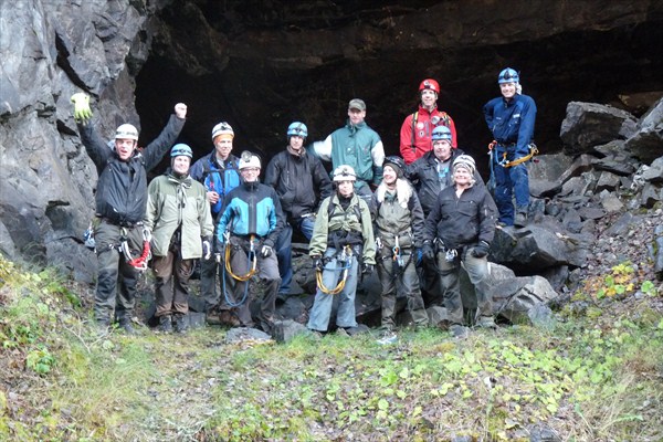 Och så var vi till slut uppe och ute efter närmare 5 timmar i denna fantastiska underjordiska värld. Vi tog en gruppbild av det härliga gäng som gått igenom alla dessa äventyr och strapatser tillsammans. Den här dagen och den här turen blir ett minne för livet och är något av det häftigaste och roligaste vi har gjort! 🙂