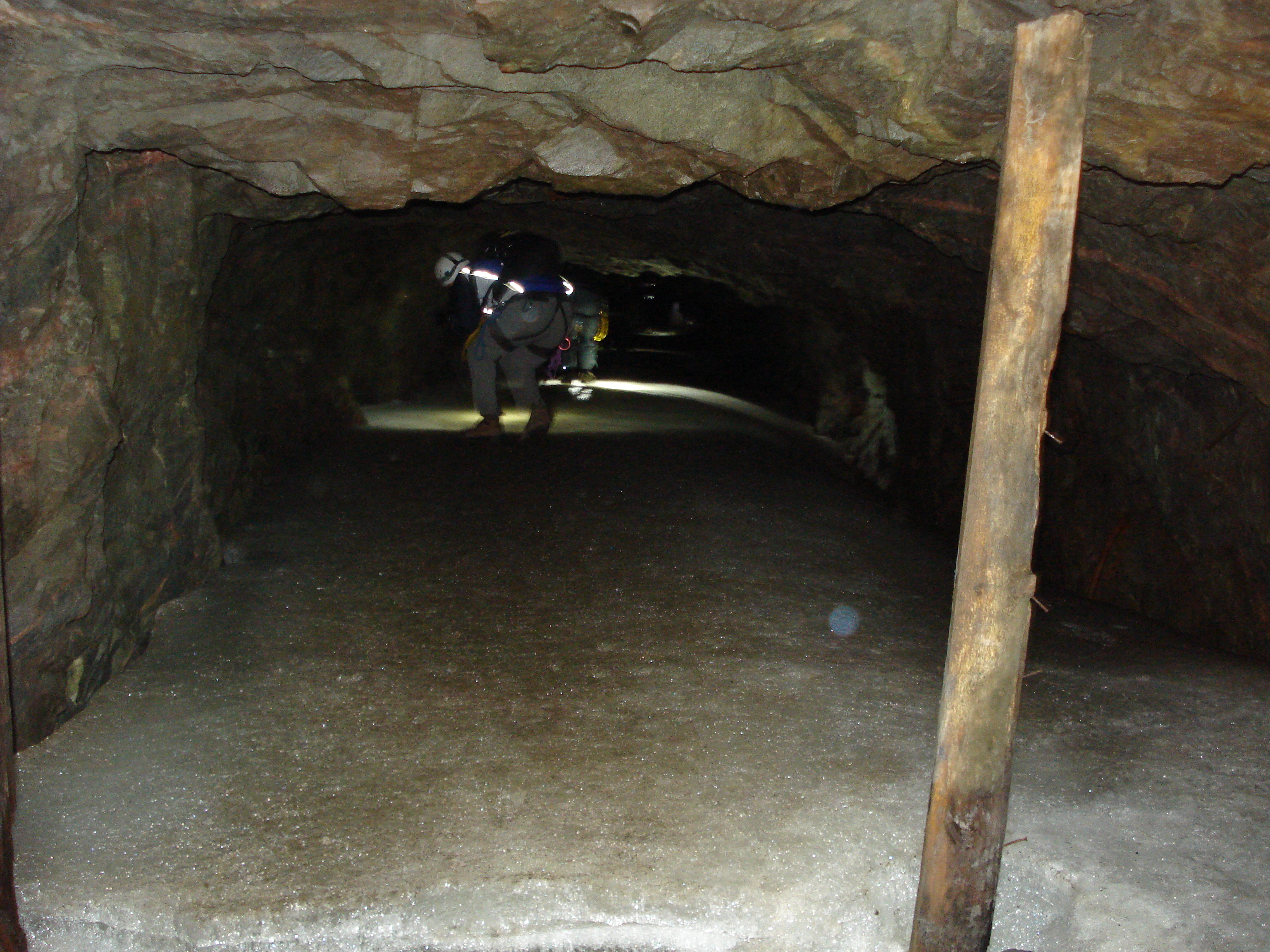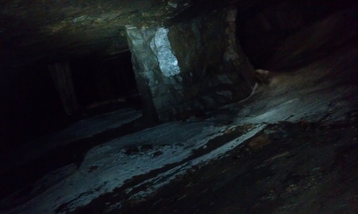 Vi kom ganska snart ner i en helt annan värld. På vissa ställen var det ganska snett och vint för brytningen hade följt malmkroppen som gick i sneda skikt genom berget och så hade man lämnat pelare som skulle hålla upp taket.