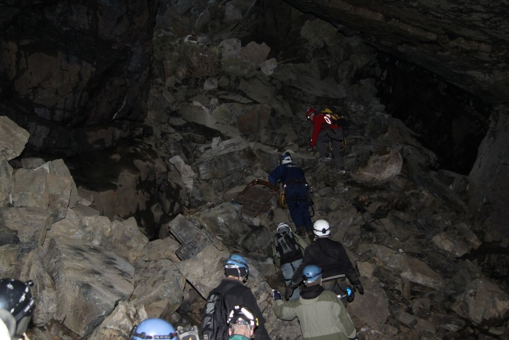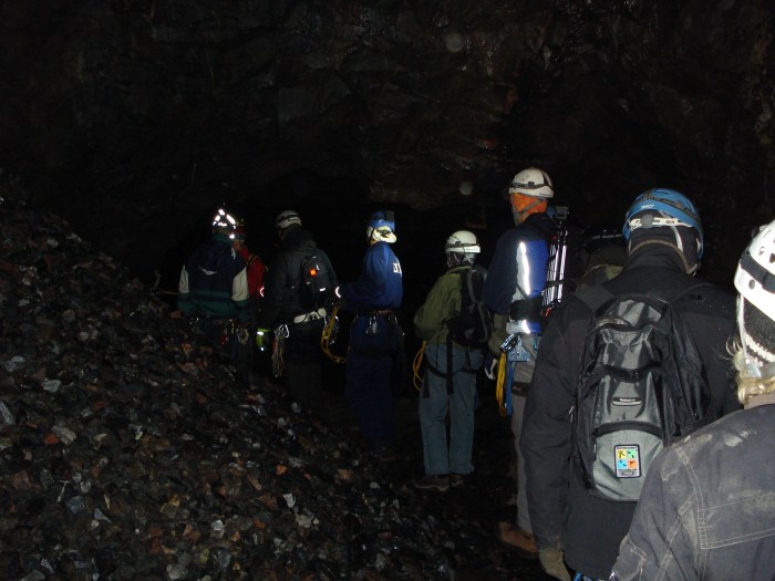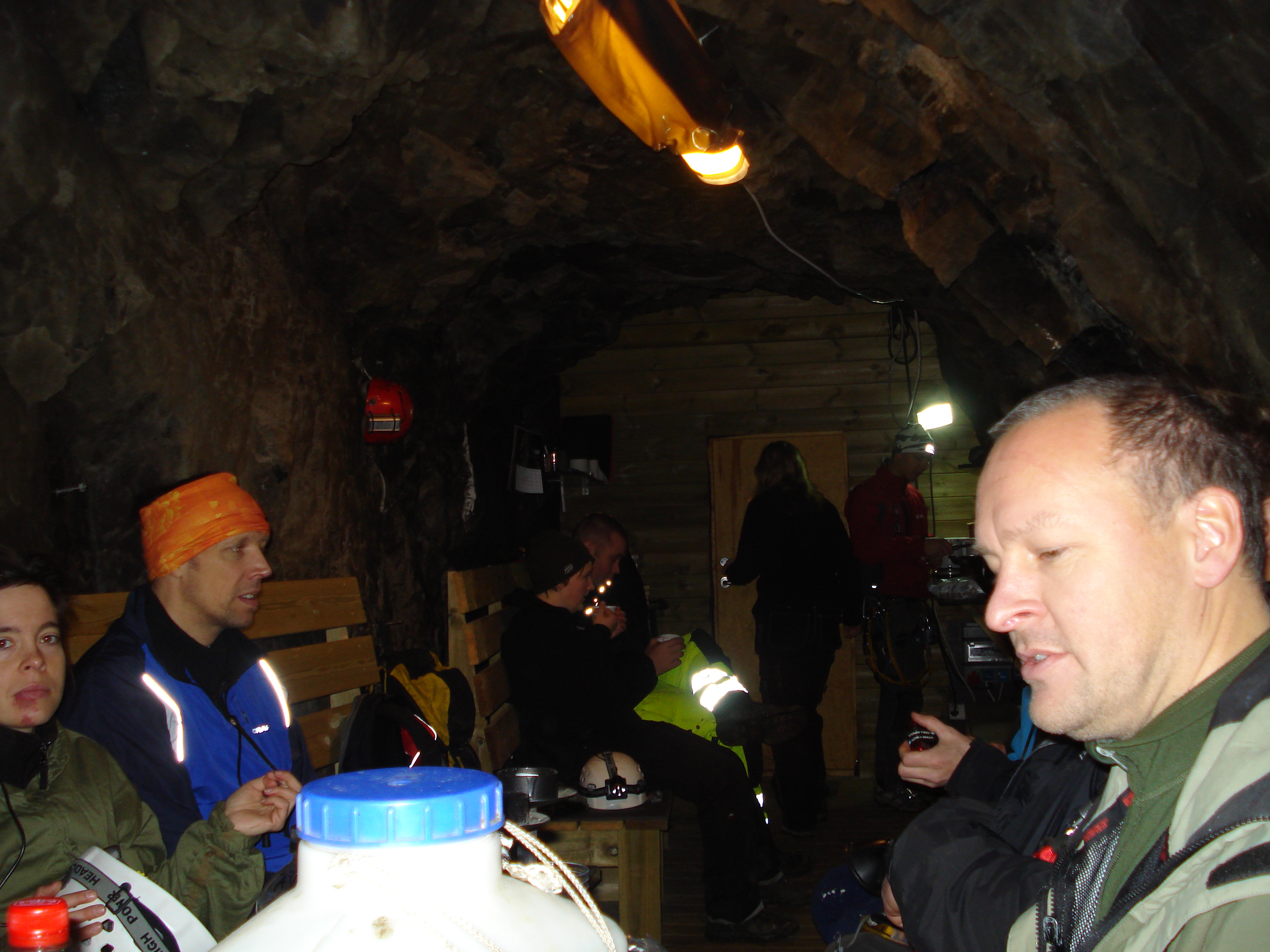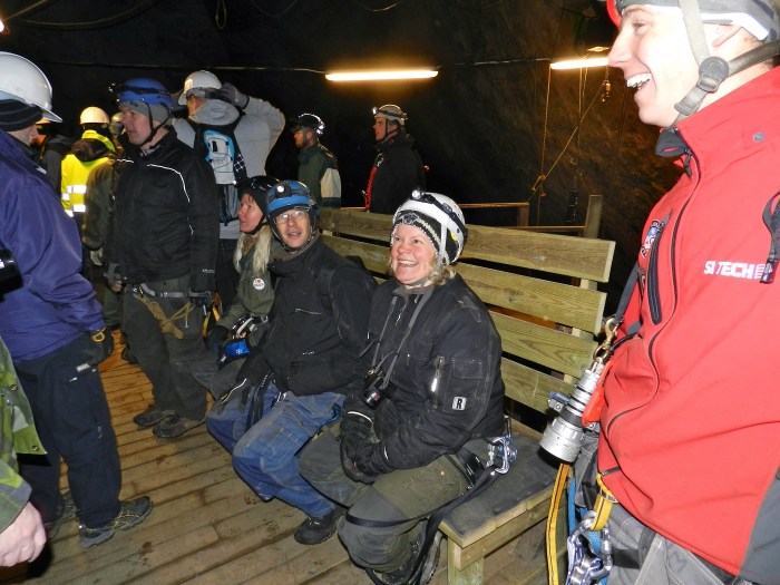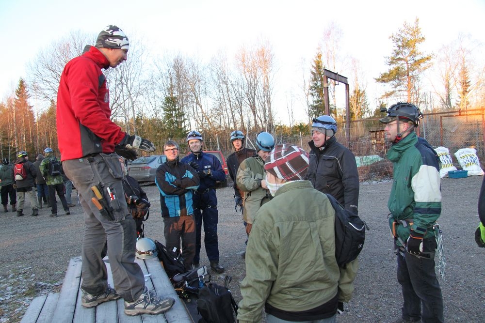 Det var tre grupper som skulle ner i gruvan: två mindre äventyrsgrupper och en lite större grupp som skulle gå trappvägen i den ”snälla turen”. Dessutom var det en grupp dykare på platsen som skulle ner och dyka i de djupa gruvgångarna.