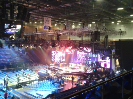 Och nu i helgen blev vi bjudna av Hasses jobb till Leksand och Melodifestivalens tredje deltävling. Det var en upplevelse att se melodispektaklet live. Det som imponerade mest var alla scenarbetare som sliter mellan låtarna för att städa bort och rigga för nästa nummer. Osynliga hjältar som kvällen till ära alla var klädda i knätofs och daladräkt. Vid Tegera Arena finns det förstås en burk som vi passade på att logga på vägen till parkeringen. 😉