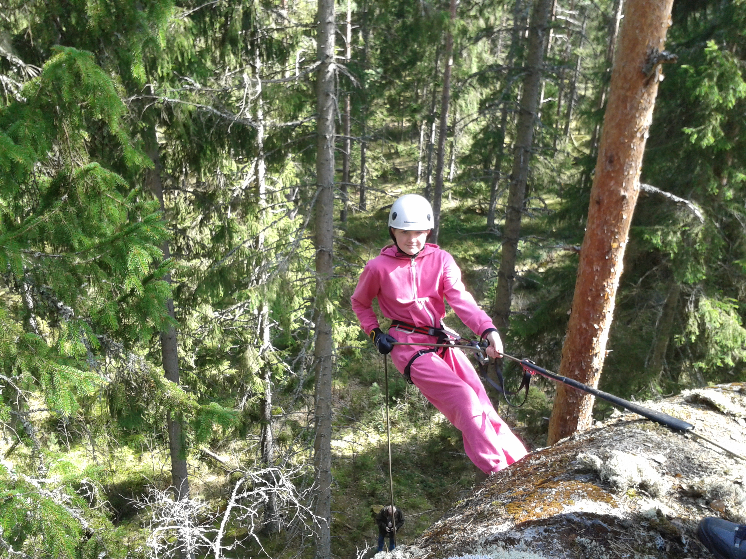 Modigt gjort och hon klättrade dessutom uppför klippan med hjälp av en s.k. ”ascender”.