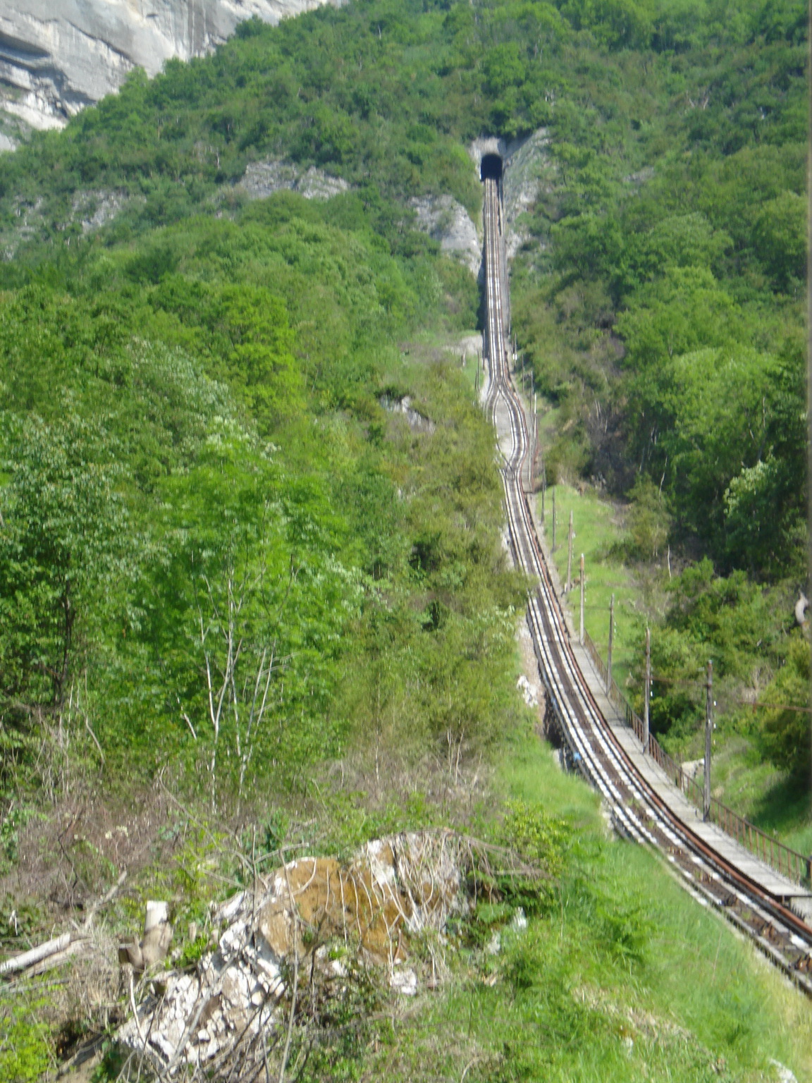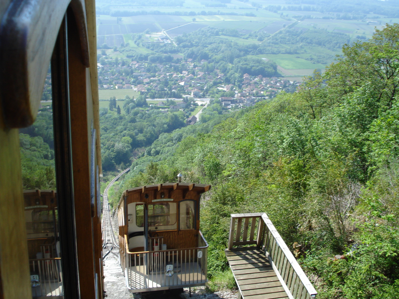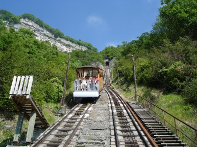 Vi tog en gammal vajerdriven bergbana upp till en liten by.