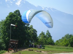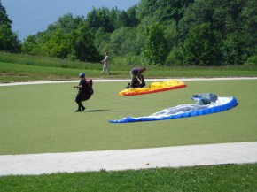 Häruppe låg både en burk och en startplatta för skärmflygare. Det var häftigt att titta på när de kastade sig ut för bergskanten och fick vind i skärmen.