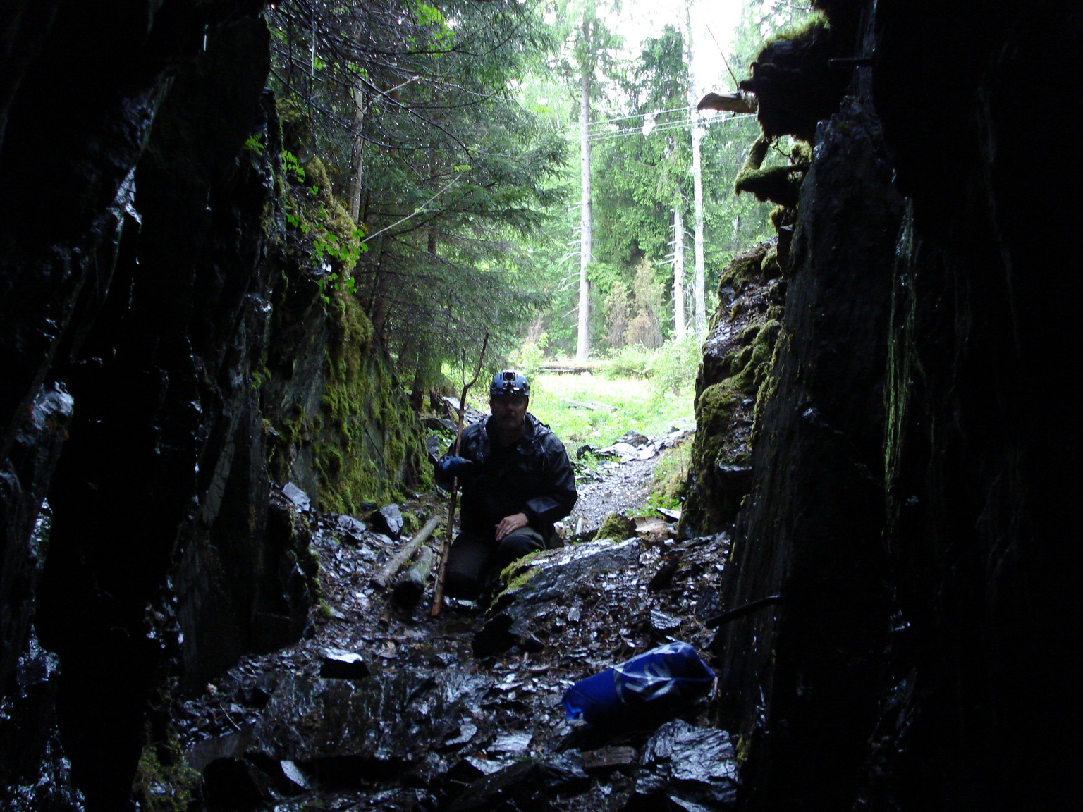 Här har vi kommit en bit in, men man ser fortfarande ljuset därborta vid ingången. Det är en fördel att ha bra pannlampor och extra batterier till dem. 🙂