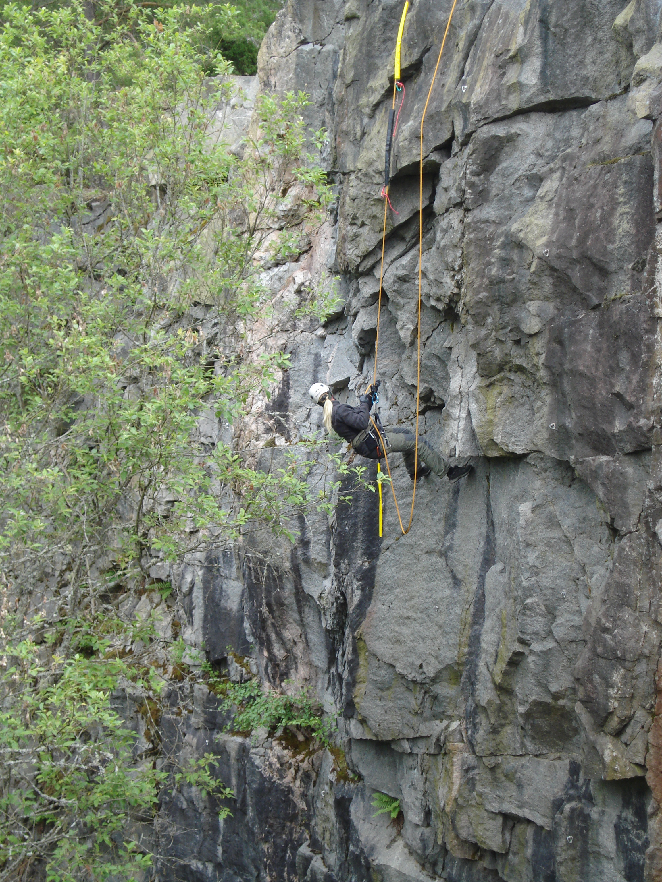 Såna här klippor kräver respekt och vi var väldigt noga med valet av ankring, samt att repskydd, hjälm och sele satt ordentligt på plats. Måste säga att alla firningar här var riktigt bra träning i både säkerhetstänk och höjdkänsla. Trötta men nöjda efter loggningen av burken vandrade vi tillbaka till bilen och åkte vidare mot nya mål och Äventyr. 🙂