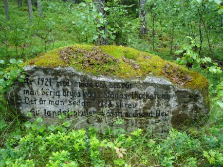 Och så ett par historiska och mystiska platser i skogen. Först ut en sten som handlar om byggandet av vägen vid Stängselbacken. Tycker det är underbart med såna här minnesmärken som finns mitt ute i ingenstans och som minner om en svunnen tid: