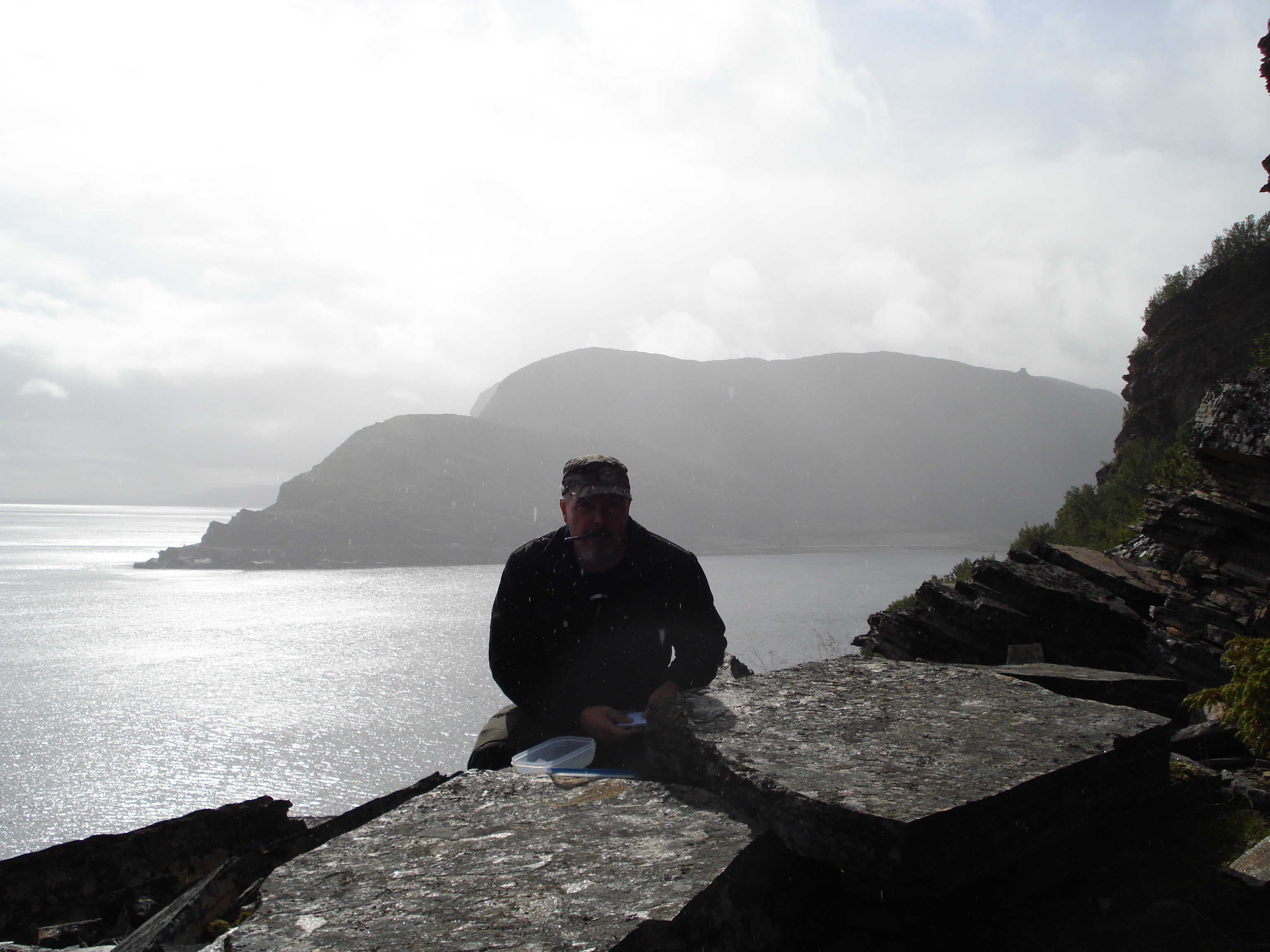 Här på fastlandet bestod bergen av jämna lager av stenskiffer, riktigt häftigt på vissa ställen. Man kan ana hur landskapet en gång pressats ihop och upp steg den gamla havsbottnen och blev till berg.