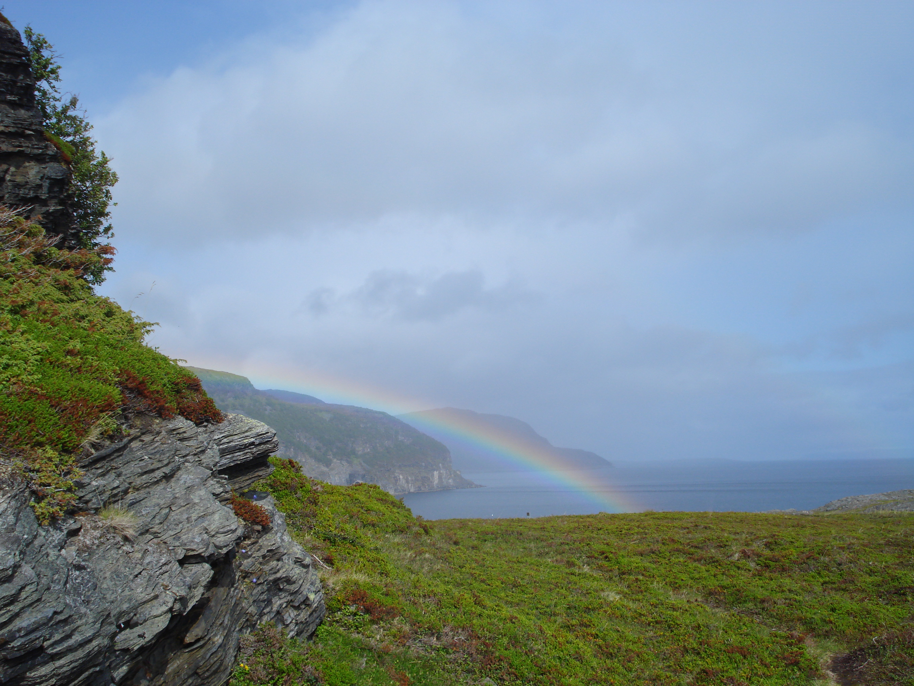 Och här har vi lämnat ön och kommit till Sortvik på fastlandet. Vädret växlade från minut till minut och här möttes sol och regn i en vacker regnbåge.