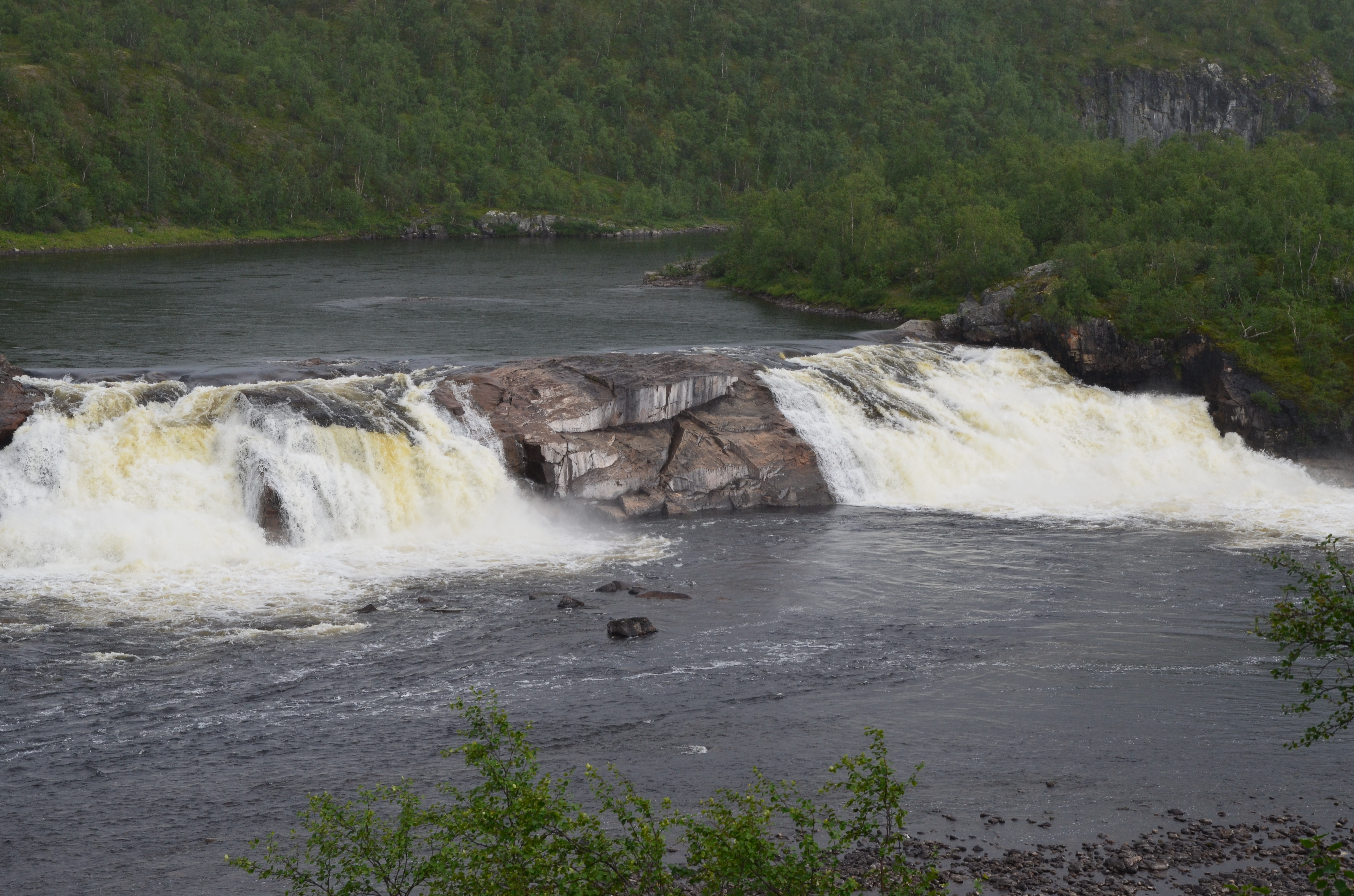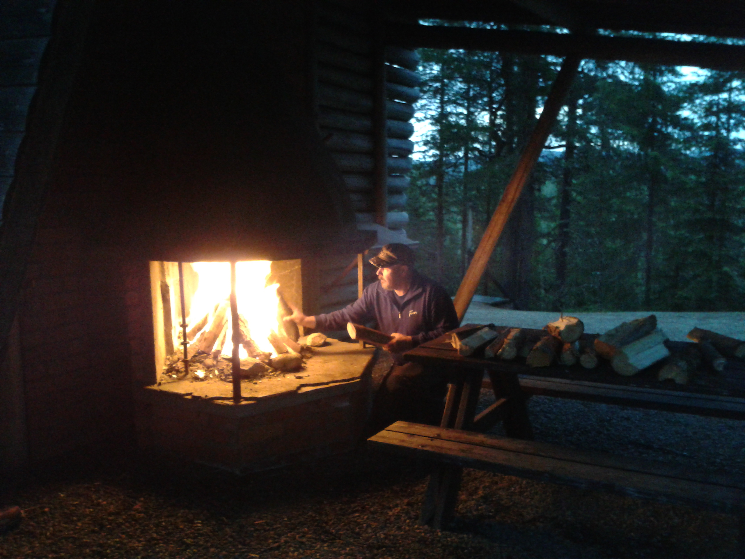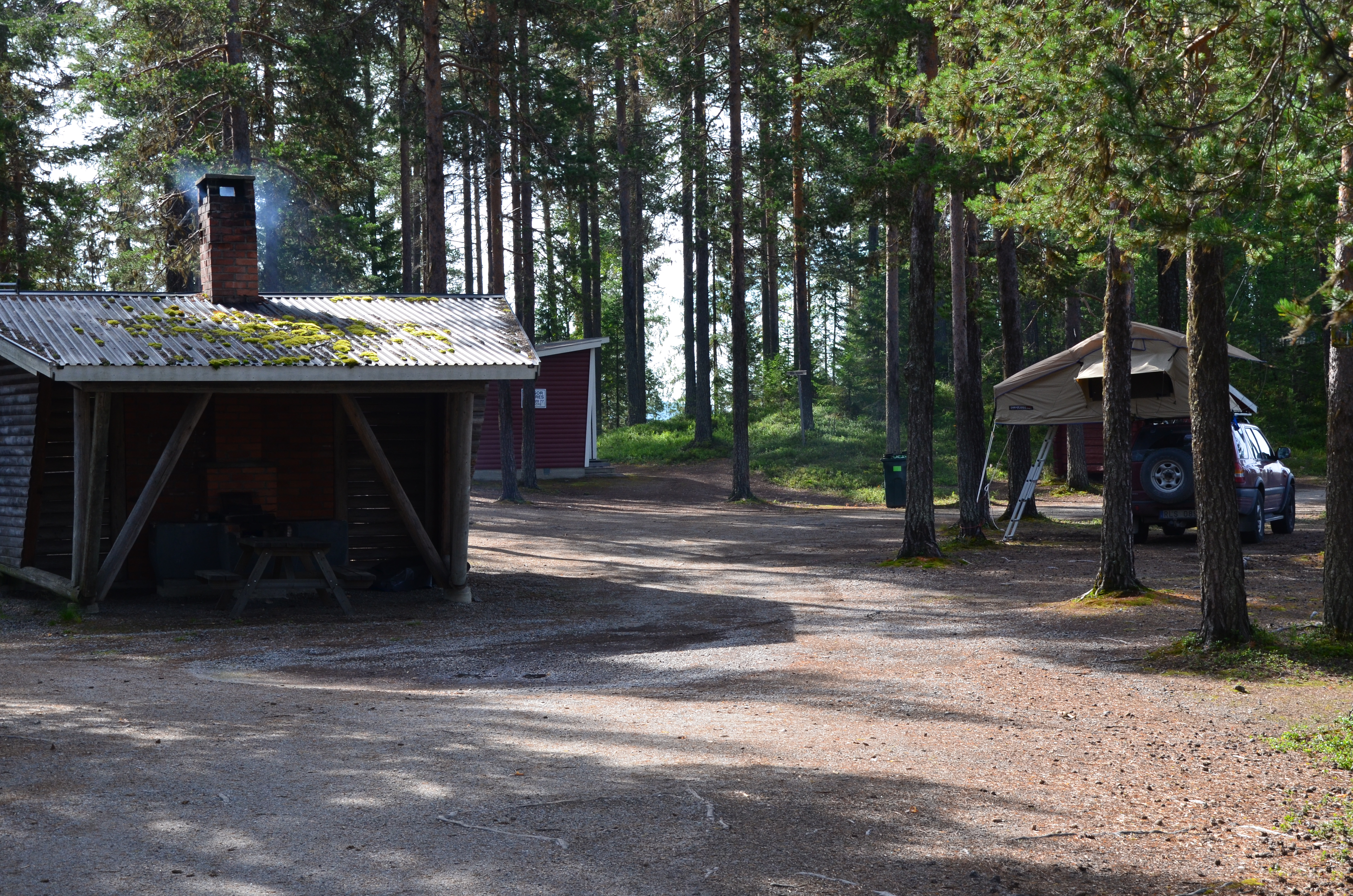 Nästa dag åkte vi på, passerade Arvidsjaur och Storuman. Vilka enorma sträckor med vildmark det finns häruppe i norr. I Storuman svängde vi åter österut och vi hittade ett underbart övernattningsställe vid Kvarnforsen i Studsviken. Här fanns ett stort fint vindskydd, ett helt förråd med ved som kommunen tagit dit och fina dass. Sverige är fantastiskt med dessa ställen som är till för alla. 🙂