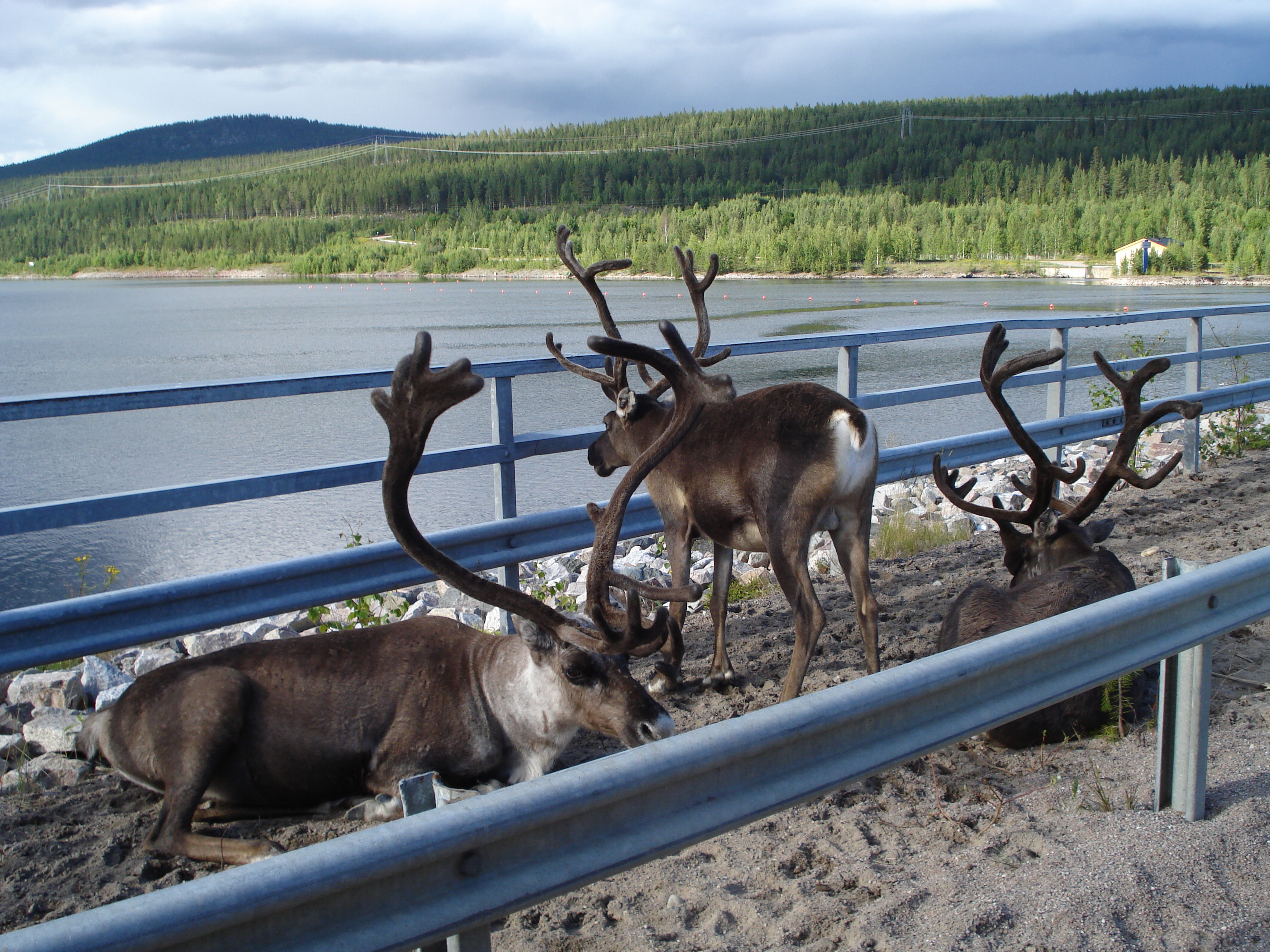 Vi fortsatte söderut och kom till Porjus-dammen. Några dammar längre ner hade ett gäng renar slagit sig ner. Här kan man snacka om vägrenar! 😀