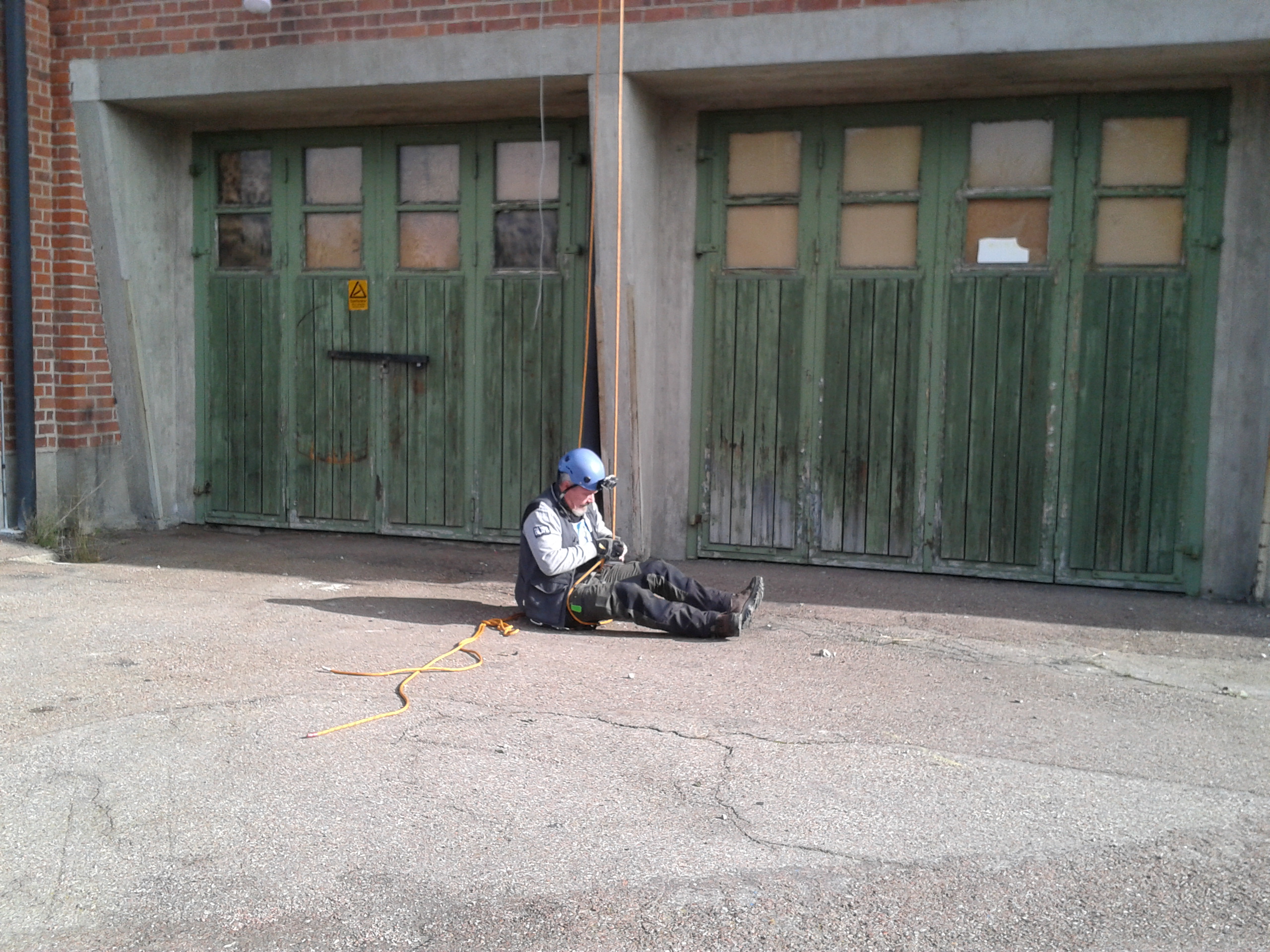 Här är det Hasse som kommit en bit ner. Samtidigt är någon på väg ner på högra sidan där det också hade satts upp ett rep.