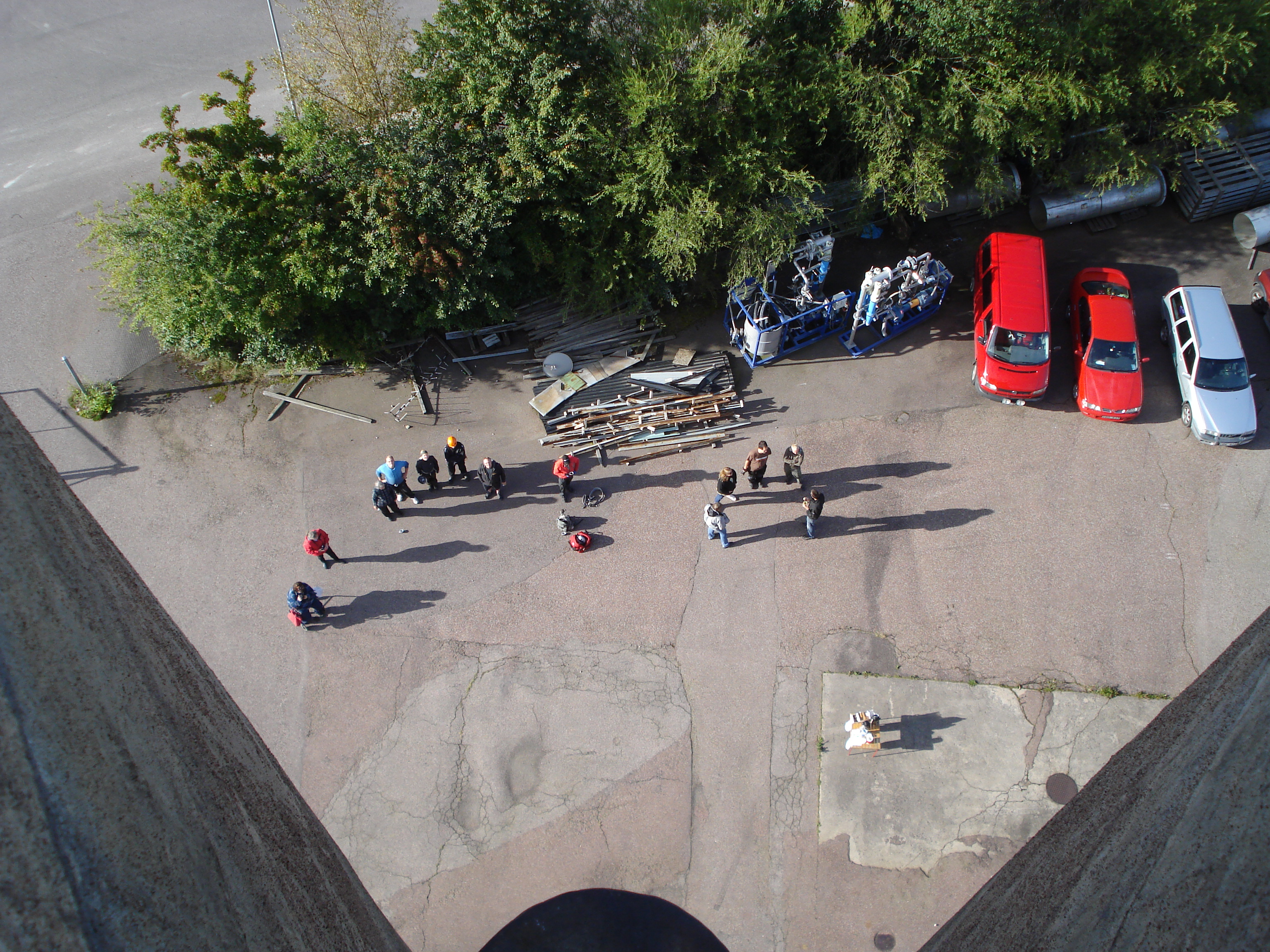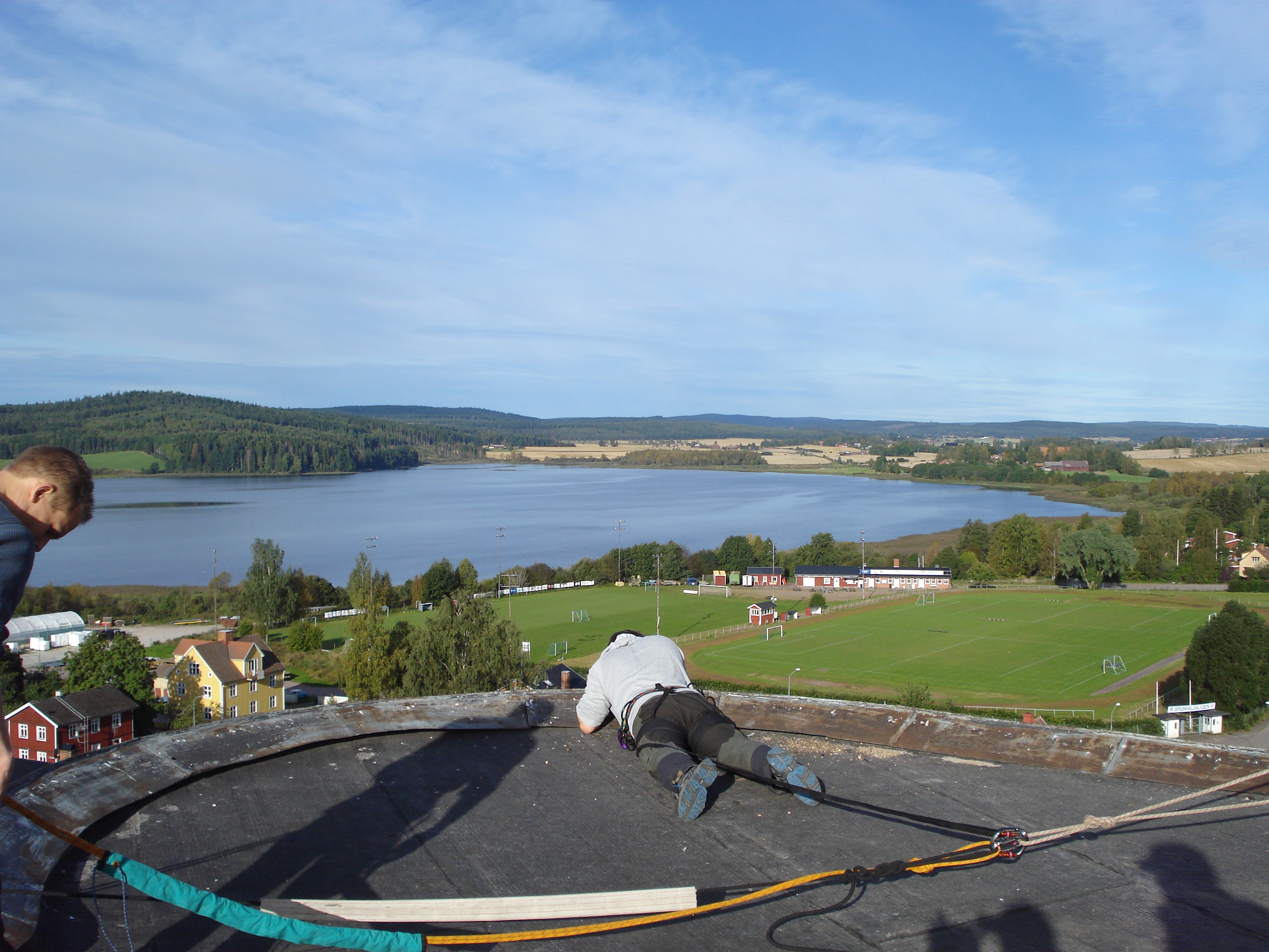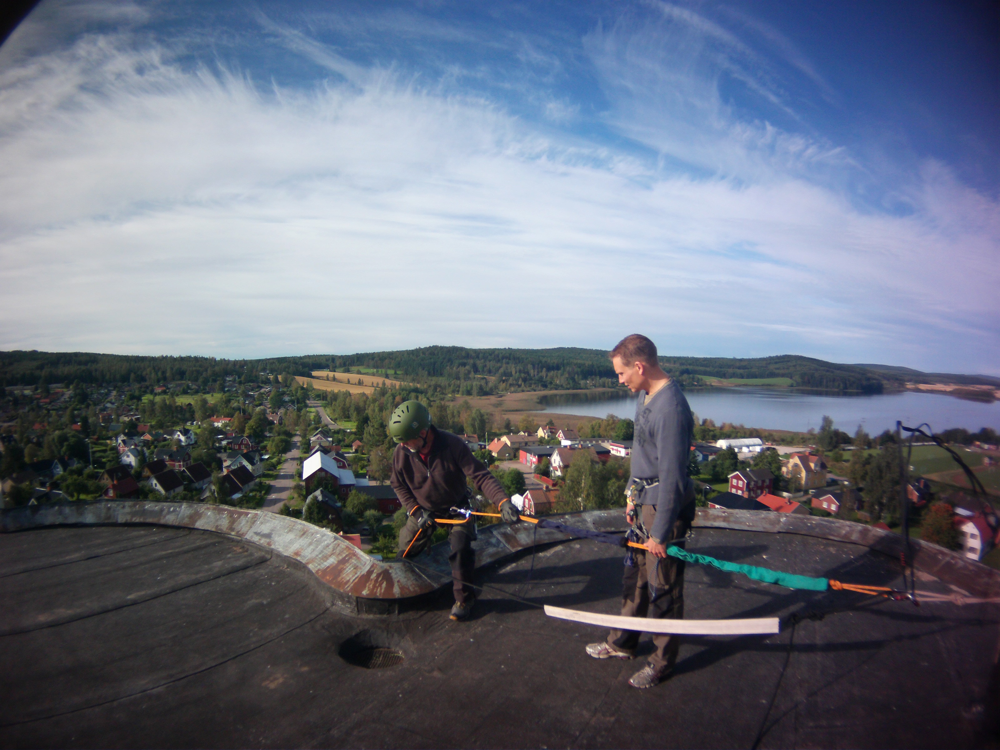 Alla var naturligtvis noga med säkerheten. Det här tornet är 32 meter högt här på taket.
