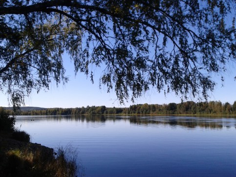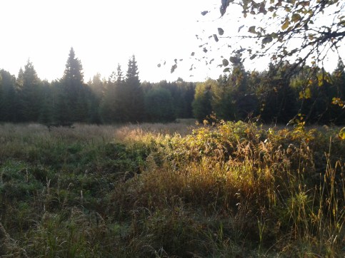 Annika vaknade som vanligt först och fick en ”nära-älg-upplevelse” i morgonsolen. Tyvärr hann hon inte fånga den ståtliga älgen på bild, men med lite fantasi och inlevelse kan ni väl tänka er en stor tolvtaggare som springer över den här ängen? 😉