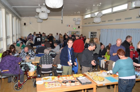 Vi åkte dock hem ganska tidigt för att ladda inför resten av helgen. På lördagens morgon var det dags för Dala Höstevent 2012. Det var många förväntansfulla cachare som samlats i Morgårdshammars Fritidsgård. Så kul att träffa både nya och välkända ansikten. Ludvikas Innebandytjejer hade ordnat ett dignande fikabord till förmånliga priser. 🙂