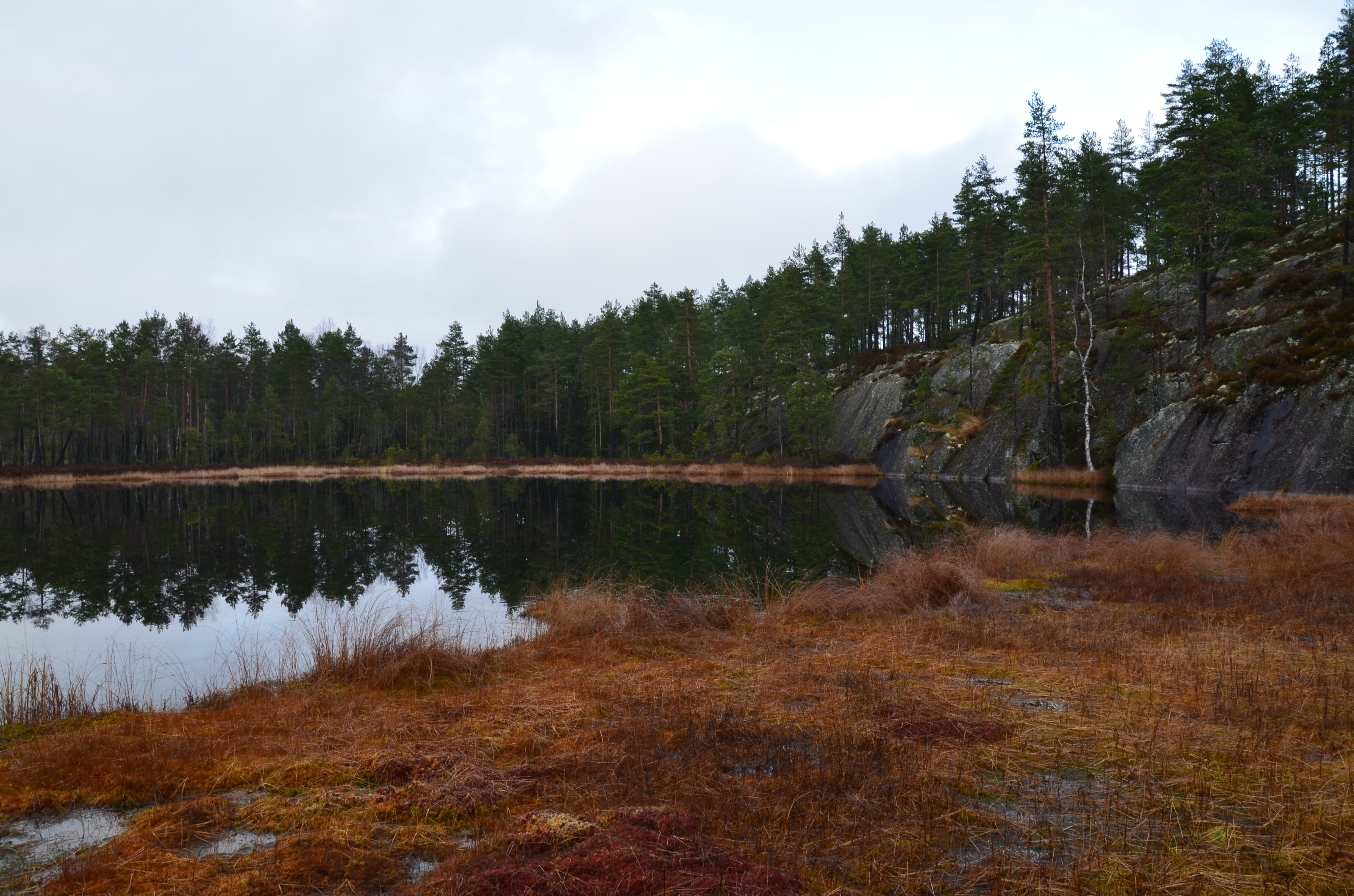 Multicachen En våt väg(g) låg vid den här fina tjärnen.