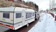 Nu har vi slagit till och köpt en husvagn som vi ska bo i när vi är i Norge. Yeeeey! 🙂 Så här ser den ut. Det här är vid rastplatsen ”Viggen” utanför Hedemora när vi körde hem husvagnen från Falun tidigare idag. Nu börjar bitarna falla på plats inför vår avfärd senare i april.…