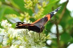 Kolla in Amiralfjärilens hoprullade snabel på mittenbilden. På tredje bilden råkade det komma med en liten ”bifigur”. 😀