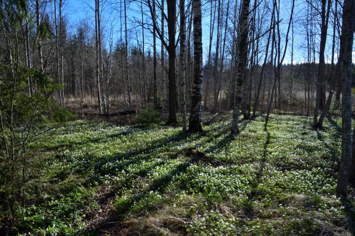 I torsdags gick vi en tur i skogarna utanför Krylbo. Där blommade vitsipporna i täta mattor. 🙂