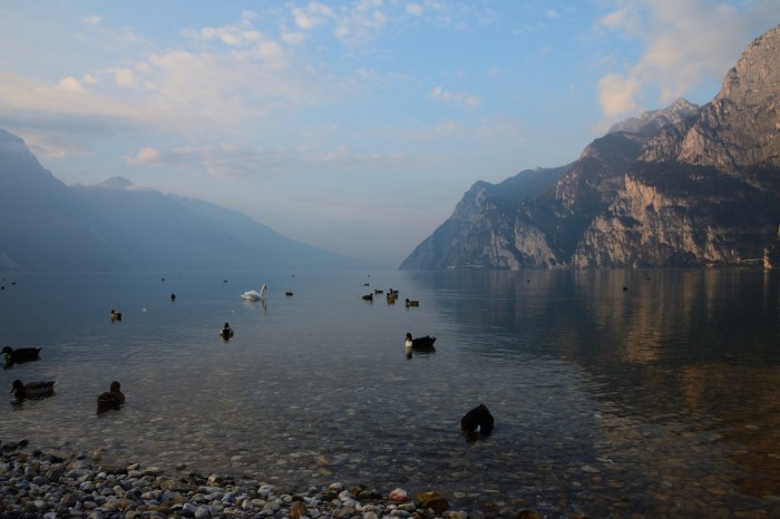 Efter eventet åkte vi vidare till Riva del Garda, som ligger längst in i den norra delen av Gardasjön. Det var inte lätt att hitta varken ställplats eller parkering för vår husbil, men till slut hittade vi en som låg bara ett par hundra meter från sjökanten. På måndagens morgon vaknade jag tidigt, gick ner till sjön och möttes av en fantastisk vy.