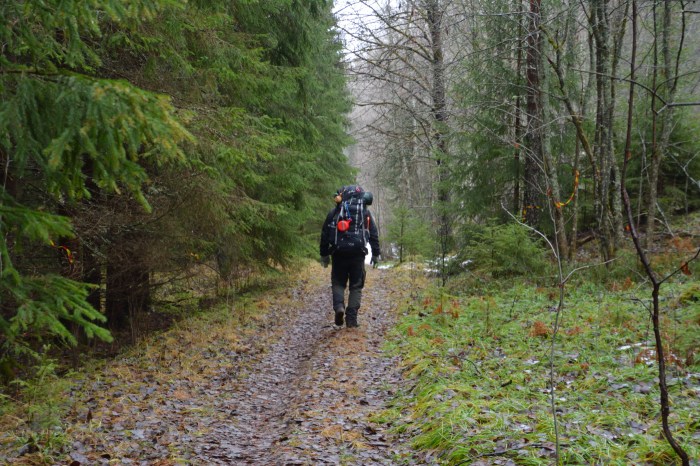 Äntligen var det dags att plocka fram tältet och ge sig ut på tur. Redan på fredagen gav vi oss ut i Fagersta-skogen för att reka lite inför lördagens båda geocaching-event. Nu har det mesta av snön försvunnit, men skogen är fin i alla årstider och väder.