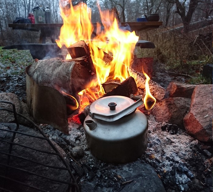 Snart var brasan igång och kaffehurran på.