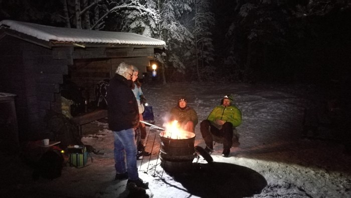 Det blev stjärnklart på kvällen och temperaturen sjönk. På morgonen kom det ett par med en hund och upplyste om att var -13 grader. De blev lite förvånade när de såg gänget som hade campat i kylan. 🙂
