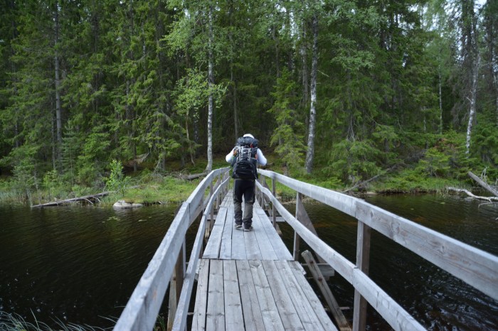 Vi bestämde oss för att vaka in nationaldagen vid Örtjärnen som ligger på gränsen mellan Dalarna och Västmanland. Örtjärnen är en riktig knutpunkt för Bruksleden som här går i fyra olika riktningar (etapperna 19-22). Då vi var ganska sent ute så valde vi att ta bilen och endast gå någon kilometer till ett av de fina vindskydden som finns här. På vägen dit passerade vi den fina Lågbron.