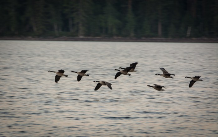 Vi satte oss för att invänta kvällningen. Det var en fin plats att sitta på och spana ut över sjön. Vi såg flera gäng med kanadagäss som flög lågt över vattnet.