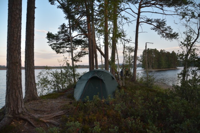 Det var häftigt att få se det här skådespelet. Vi såg också när månen kom ut ur jordskuggan samt planeten mars som en stark stjärna under månen, men det började blåsa kraftigt så vi valde att plocka ihop kameror och stativ. Det var ändå kul att titta på förloppet. Det är inte ofta man får vara med om något sådant. Tänk hur liten man känner sig i perspektivet av dessa himlakroppar. Mitt i natten kröp vi ner i våra sovsäckar och somnade gott till vindens sus och vågor som kluckade mot uddens strand. Då vi vaknade var det gråväder och ljuvligt svalt. 🙂