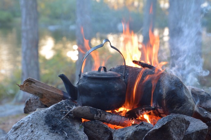 Det var lite mulet och soldis om vartannat. Snart hade vi tänt en brasa och värmde lite vatten till kaffe och te i vår lilla sotiga kaffepanna.
