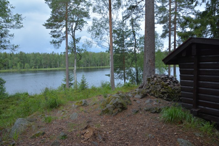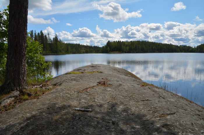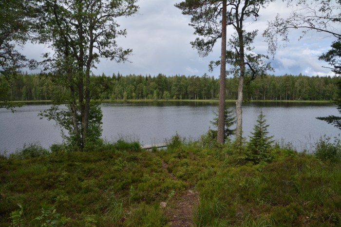 Idag trotsade jag regnet och gav mig ut på en tur för att kolla in hur långt blåbären har kommit. Jag har sett lite blåbär på sina håll, men inga stora mängder. Kanske var det lite för kallt vid blomningen? Jag gick och gick i regnet och plötsligt hade jag gått till Lilla Älgsjön, en av mina favoritplatser här i Fagersta.
