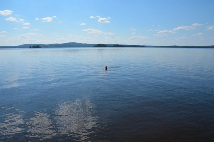 Sista bilden får bli från ett svalkande bad i Åmänningen. Det är mitt huvud som sticker upp som en prick mitt på bilden. 🙂