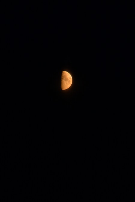 Då det sista kvällsljuset försvann kom månen fram och lyste upp himlen.