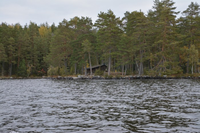 Då Hasse vaknade fixade vi frukost och kaffe, sedan plockade vi ihop vår utrustning för att ta oss tillbaka till fastlandet. Här nedan ser du Kalvöns vindskydd som ligger så fint ute på öns södra udde. Det blev en ganska kylslagen tillbakafärd.