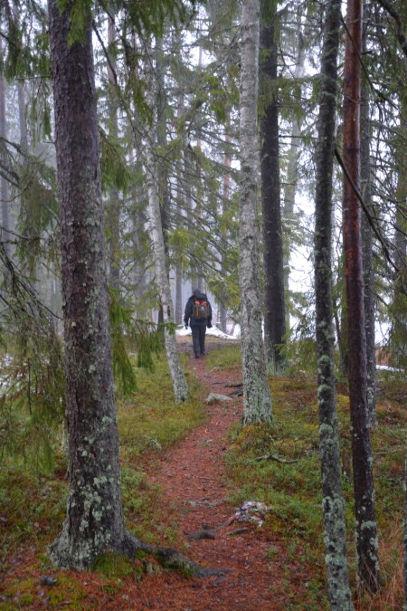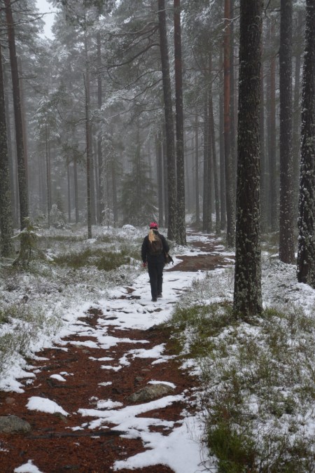 I bilden här nedan är vi på väg tillbaka efter en härlig tur på 6 kilometer. Så skönt det är att komma ut i alla slags väder. Vi kan varmt rekommendera en tur till Ötjärnen. Det är fint där alla årstider och stigarna brukar vara upptrampade även på vintern.