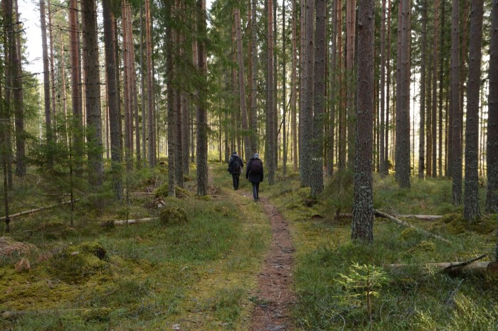 Vi vandrade både på grusvägar, i snårskog, på kalhyggen och i riktigt fin och mossig trollskog. Här såg det ut som att trollen låg och sov. 🙂