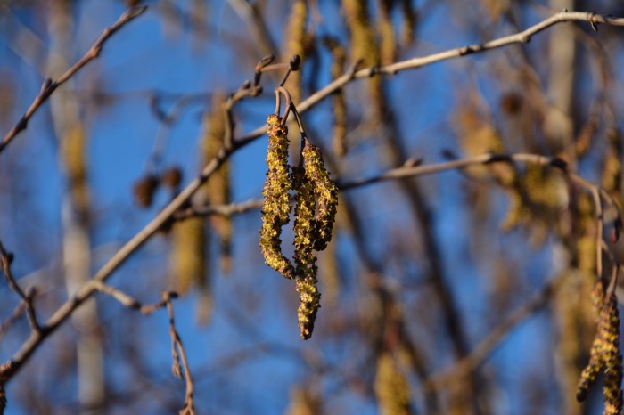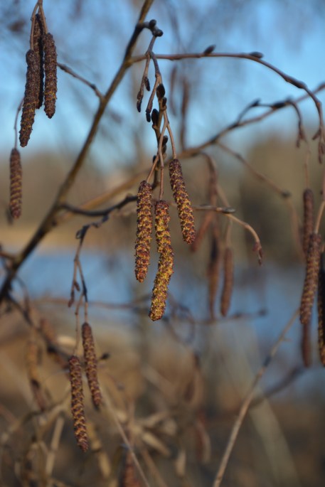 Då vi kom till Kyrkbron så tog vi ännu en paus. När vi sedan vandrade vidare så såg vi blommande alhängen. Det känns otroligt tidigt.
