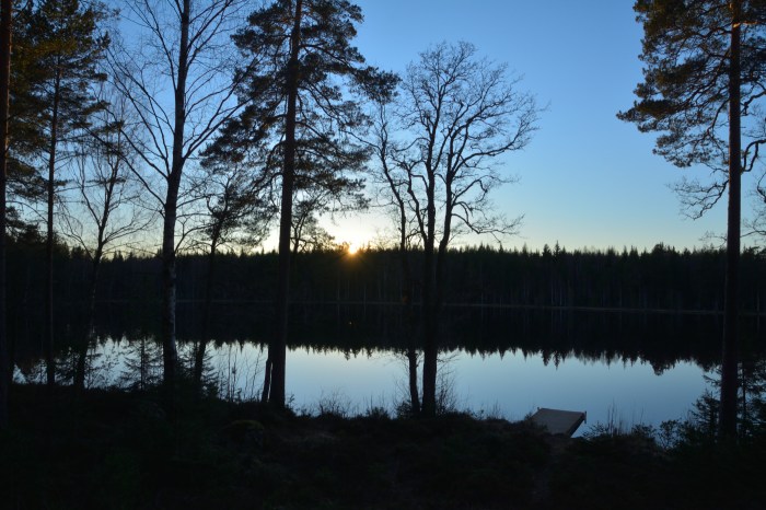 Vid halv nio-tiden såg vi solens sista strålar gå ner bakom träden.