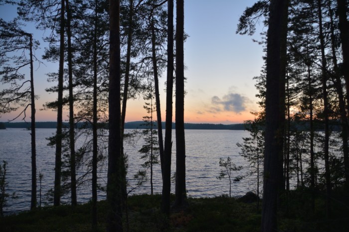 På Midsommarafton tog vi oss ut på sjön Åmänningen i Ängelsberg för att övernatta ute i naturen. Det var ljuvligt att komma ut på sjön och svalka sig i den friska sjöbrisen. Då vårt favoritställe, vindskyddet på Kalvön, visade sig vara upptaget, så fick vi ta oss till en annan fin plats på Kalvön, med fin utsikt bort mot Landsberget.