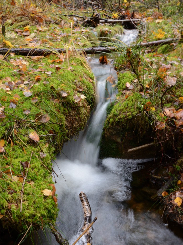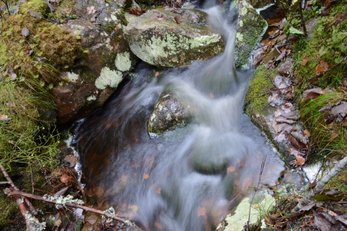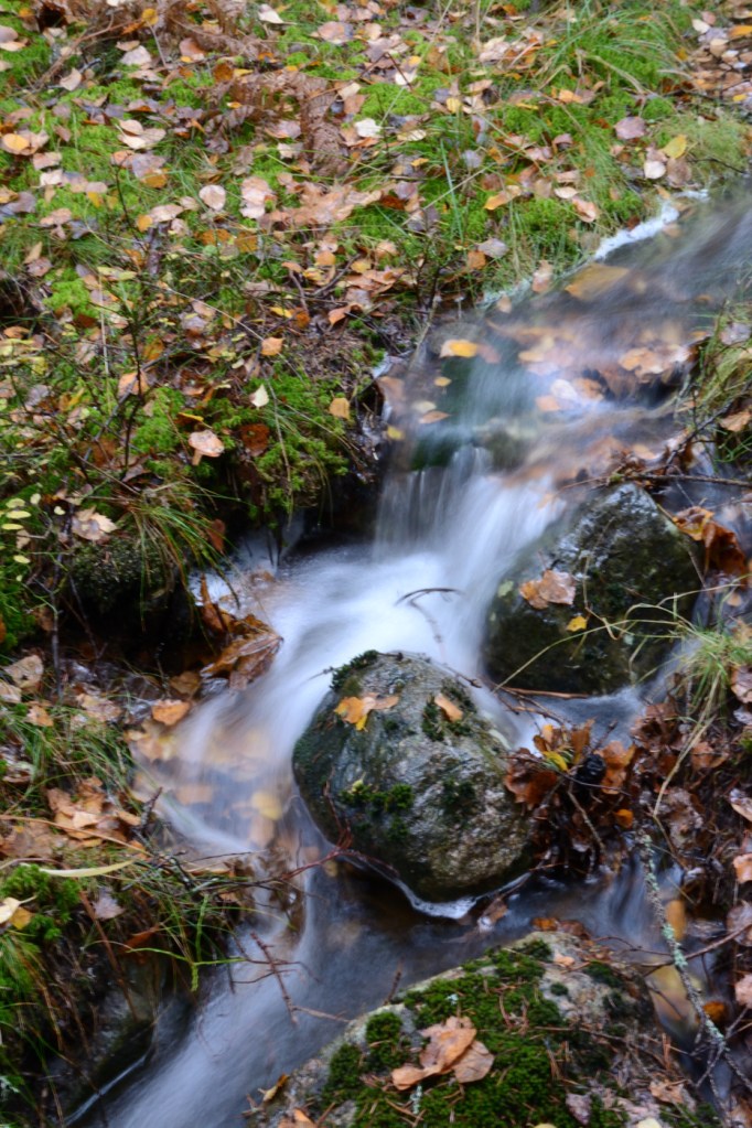 Det har varit sol, moln och regn om vartannat. Nu är det verkligen mättat med vatten i naturen, och de små bäckarna i skogen porlar så fint. Jag har varit runt till olika små bäckar och försökt fånga det härliga flödet.