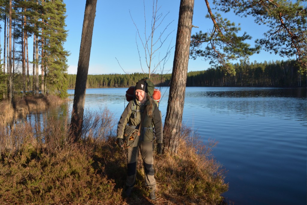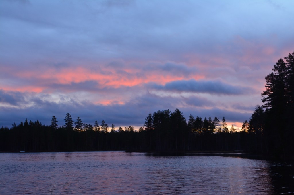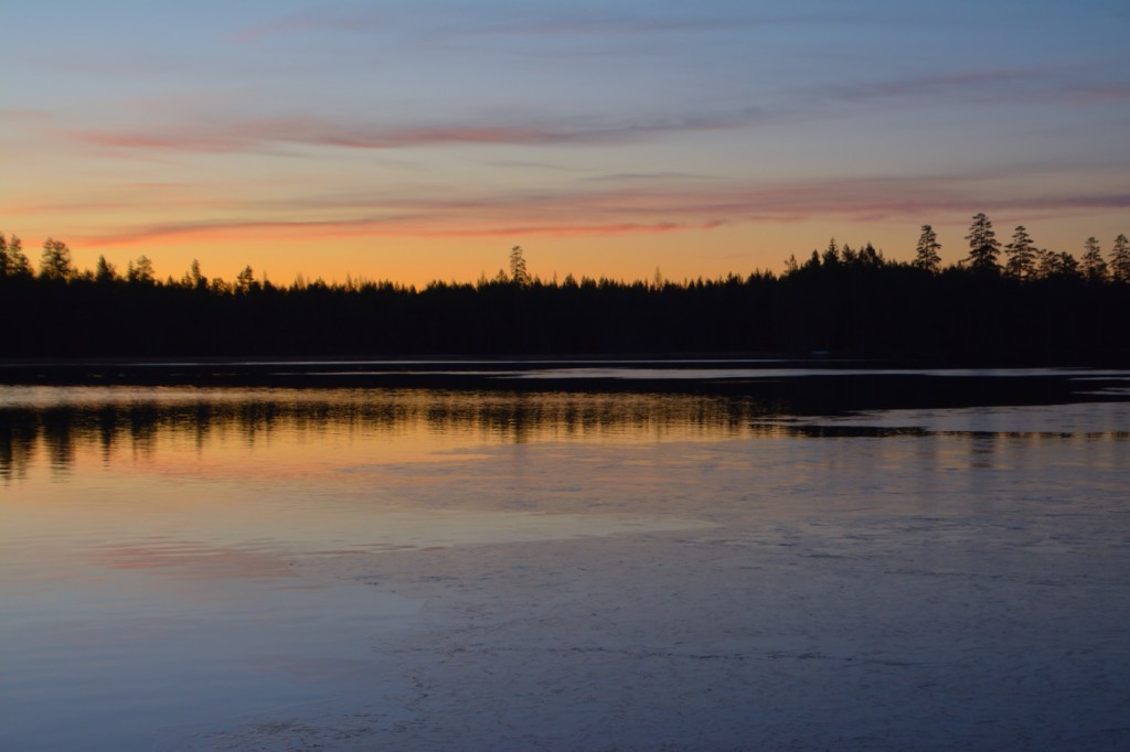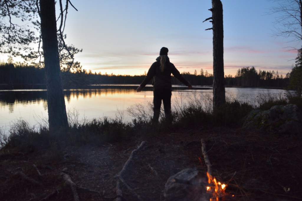 Det började blåsa upp på kvällen, men tack vare skogen så var jag skyddad från den kalla vinden. Det positiva med vinden var att molnen skingrades och jag kunde lägga mig på liggunderlaget och blicka upp mot den gnistrande stjärnhimlen. Vid 21-tiden var det dags att förbereda för att krypa ner i sovsäcken. Det är en liten procedur den här årstiden när det är lite kallare ute. Du behöver byta om till ett torrt underställ och ha koll på vatten, mat och kläder så att allt hålls ”varmt” och inte fryser till is. Till slut låg jag ändå i min vintersovsäck och lyssnade på vinden som susade i tallarnas topp. Det är ett mysigt och sövande ljud.